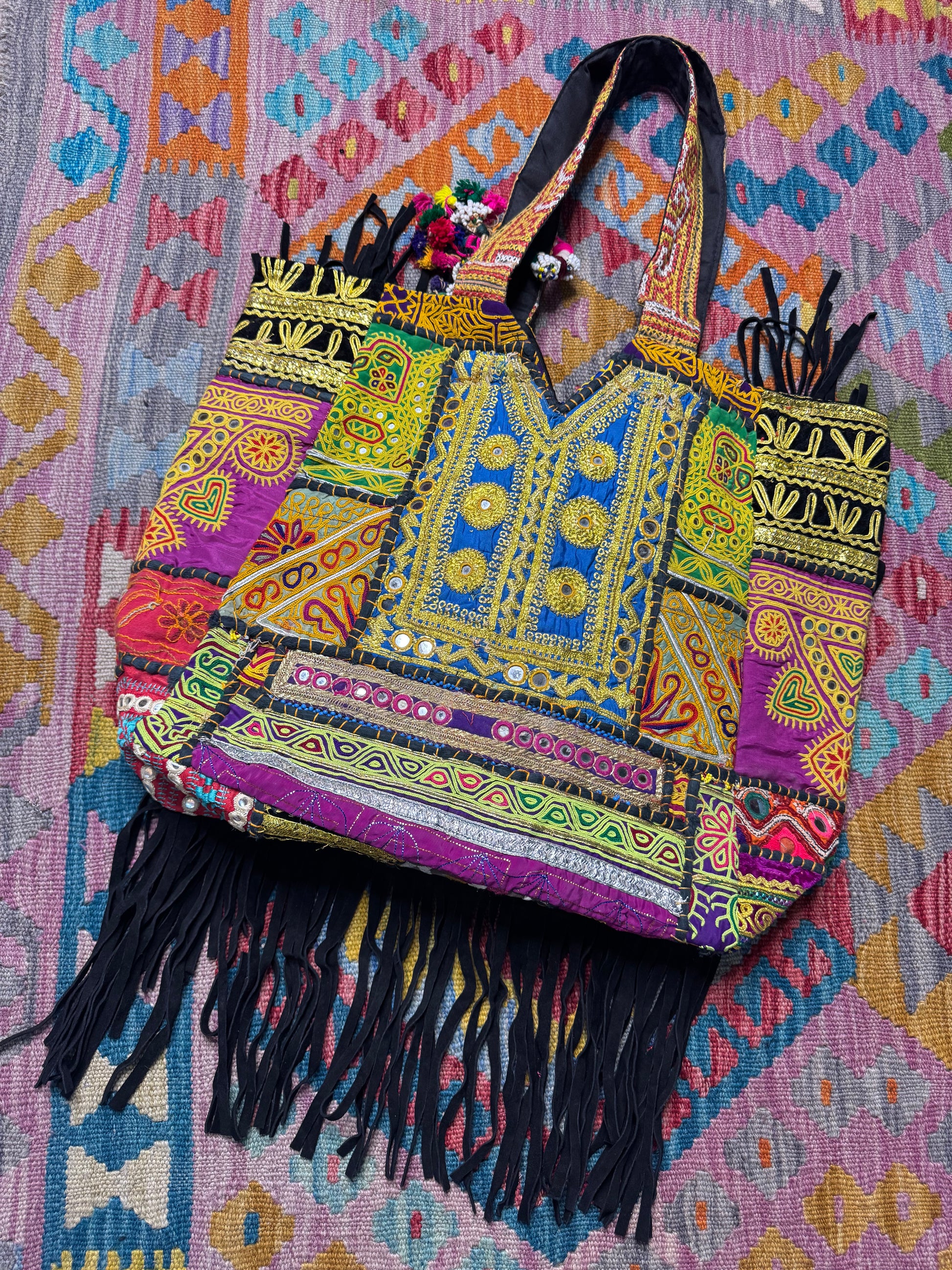 Please note the fabrics used to make this bag are vintage meaning they've had a life before being upcycled. Take care of them and don't overfill your bag. Each bag shows wear & tear and slight imperfections making each style more exclusive and unique.