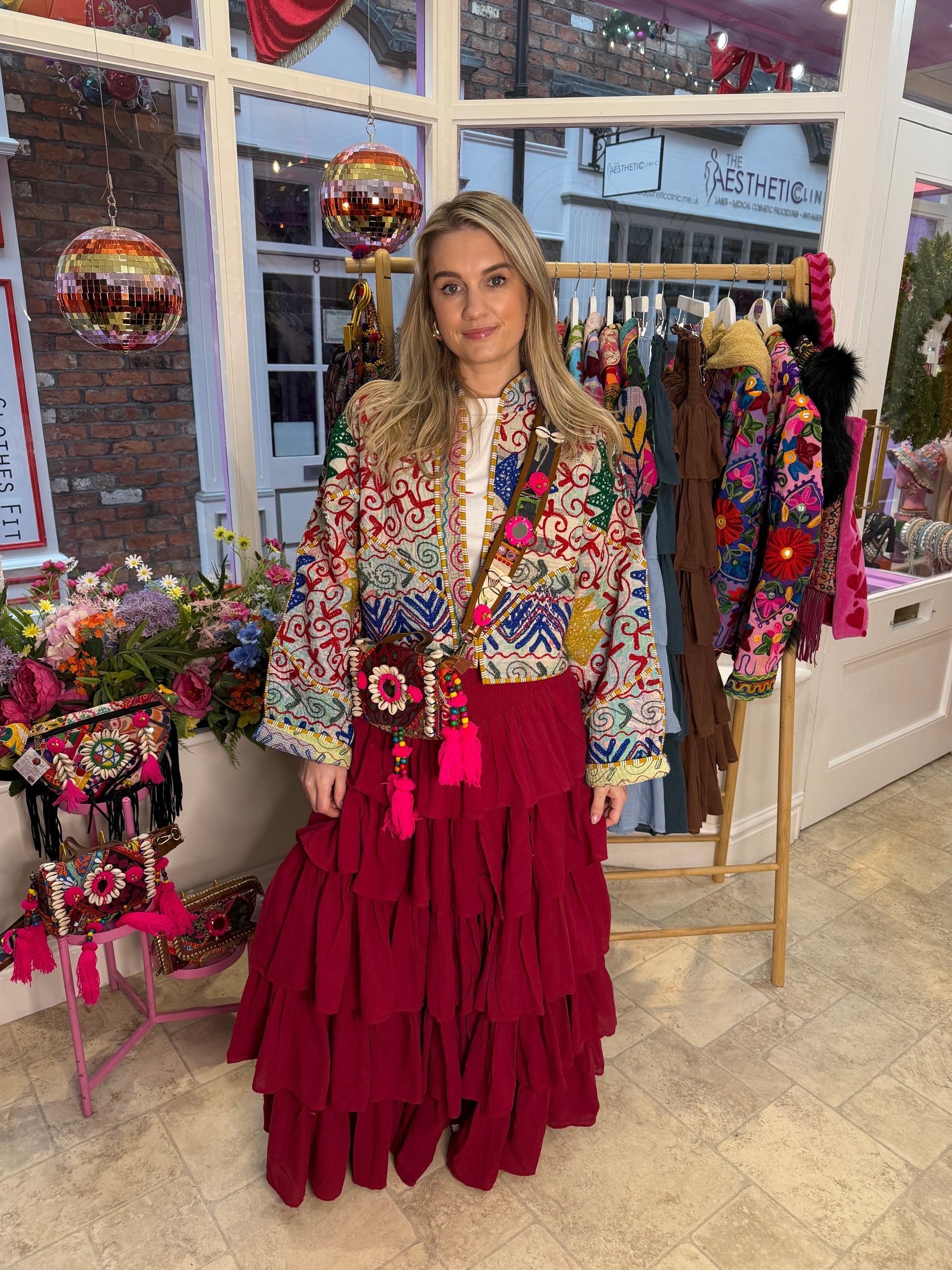 Turns heads in our unbelievable new Bohemia Skirt, features a slide split and thick elastic smocked waistband.