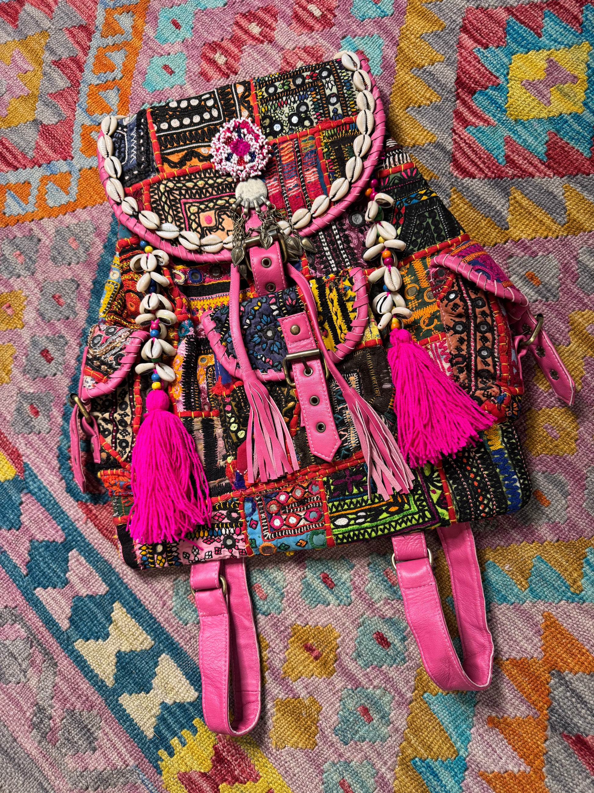 Handmade with vintage patchwork textiles, coin and jewellery decor, your backpack is a lifetime item that will see you from day to night not just at festivals but for everyday.