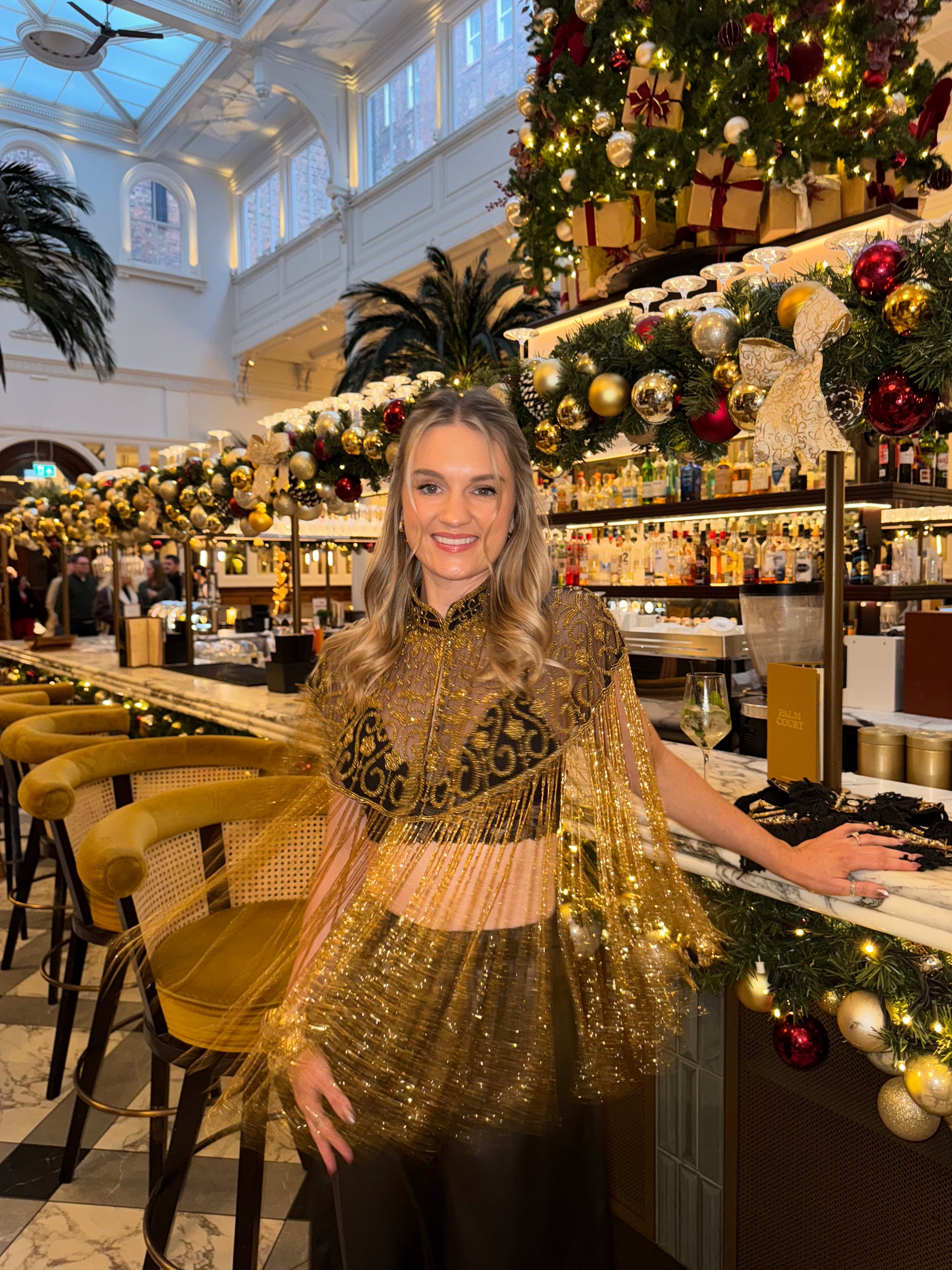 Embellished Tassel Beaded Cape - Black & Gold Flower