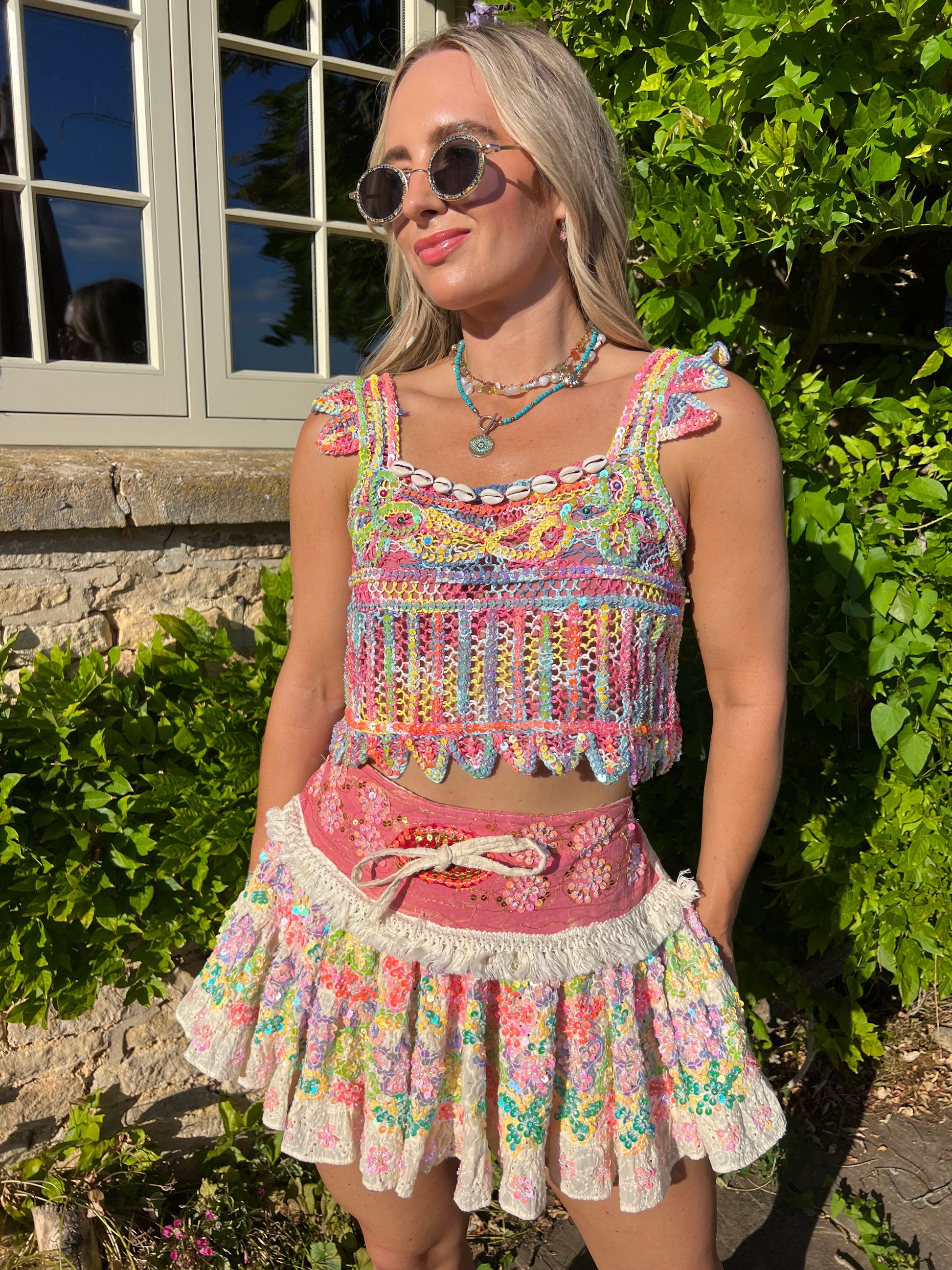 Avoid wearing anything that will snag the material as sequins are all hand sewn on.