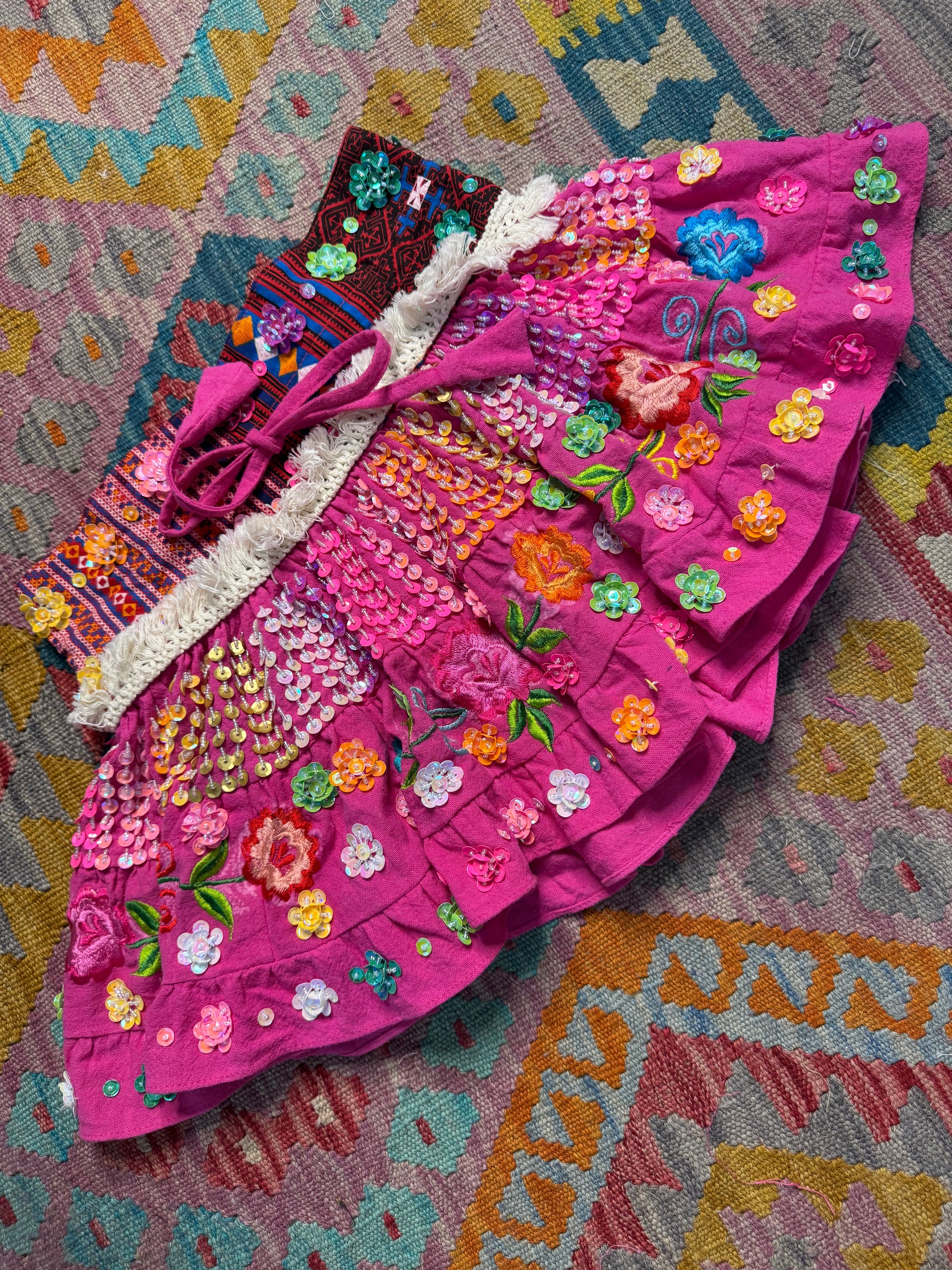 Avoid wearing anything that will snag the material as sequins are all hand sewn on.