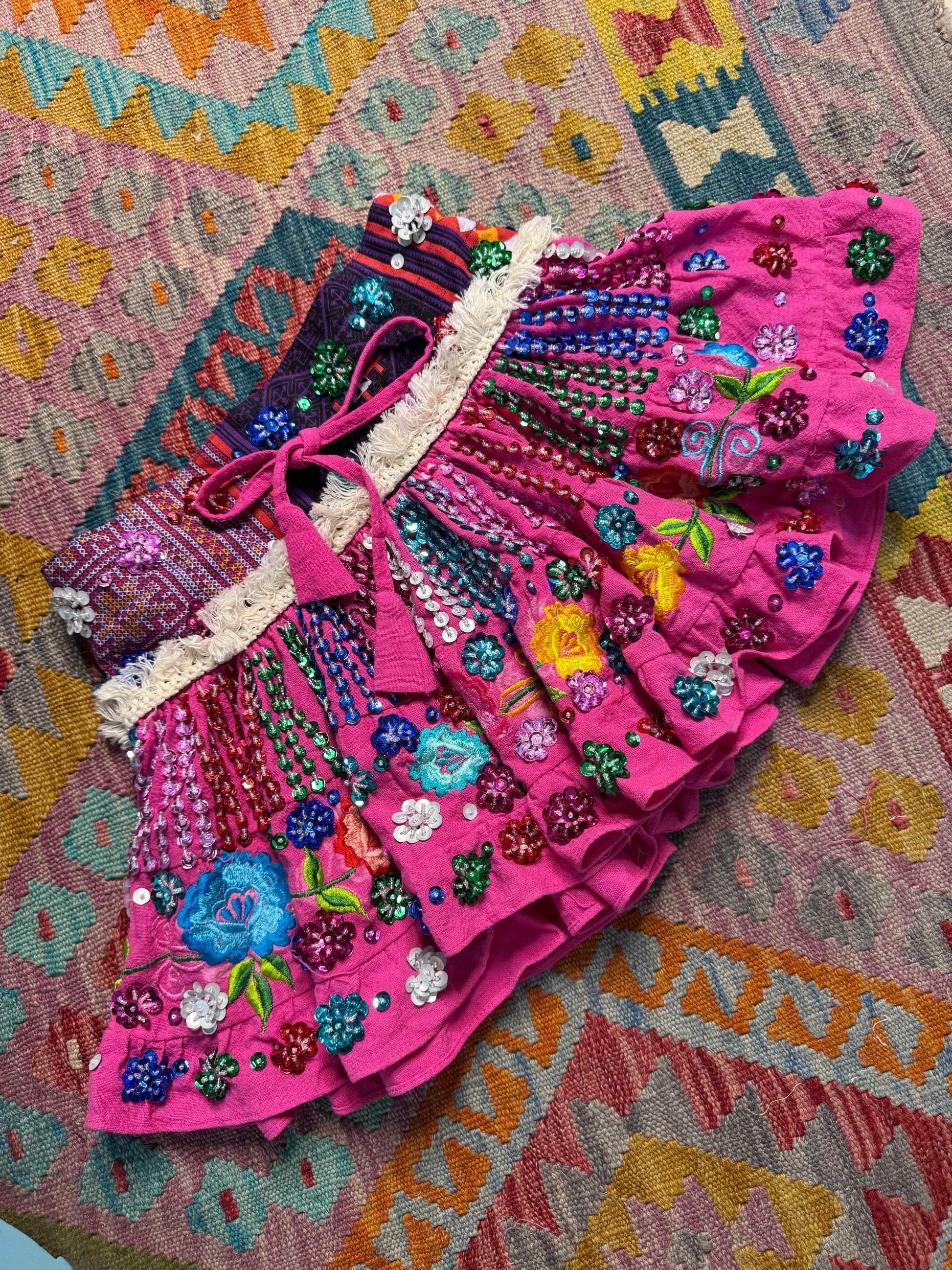 Avoid wearing anything that will snag the material as sequins are all hand sewn on.