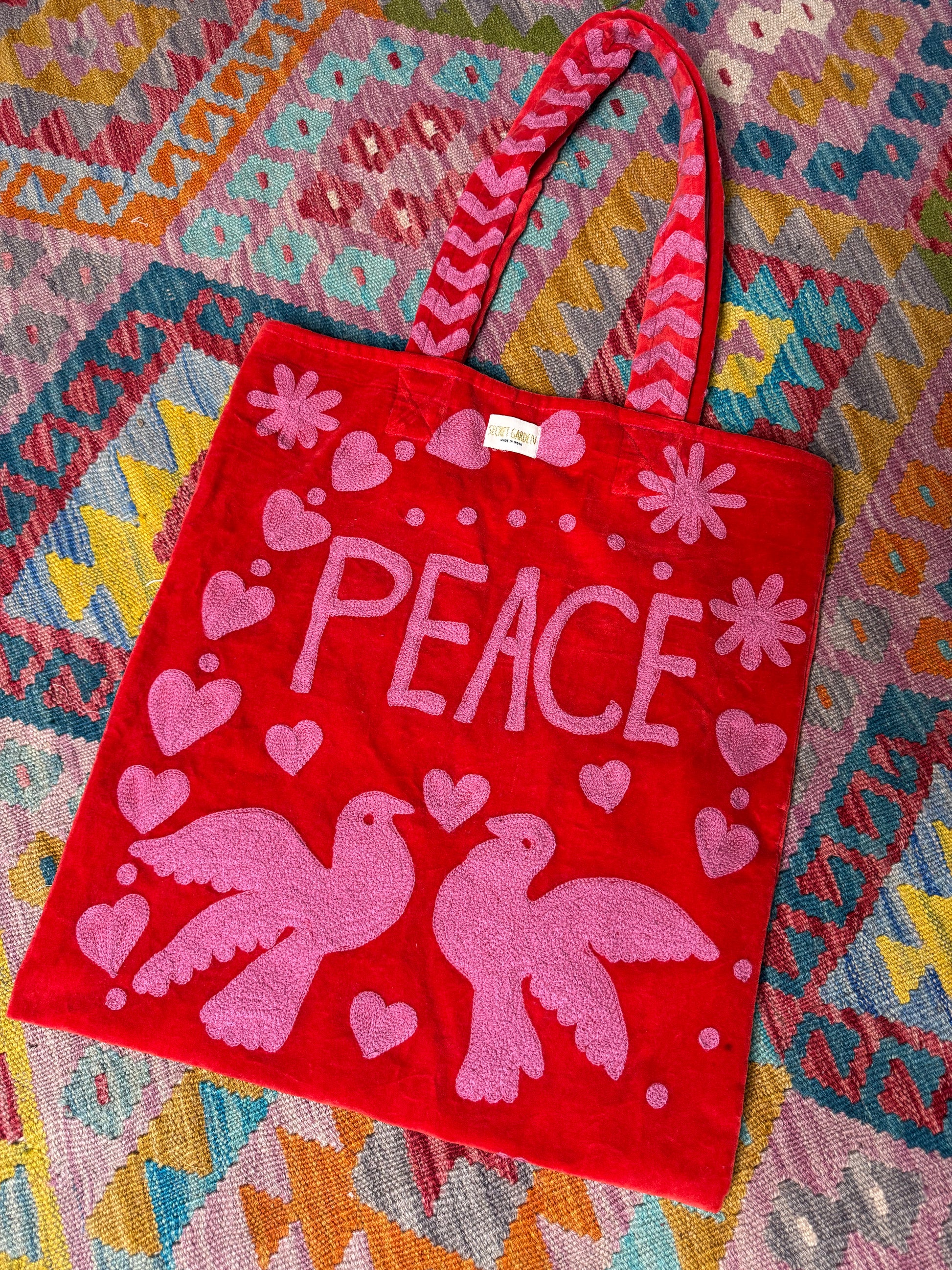 Spread good vibes everywhere you go with our Peace & Love Tote.