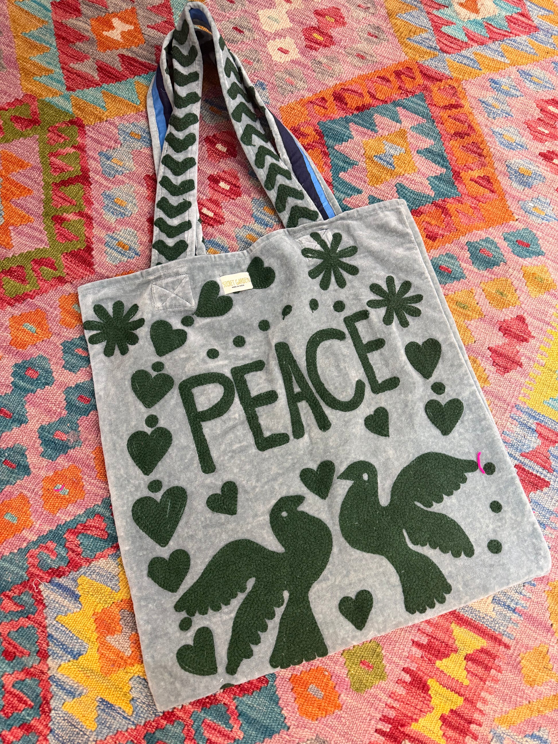 - Sturdy, comfortable embroidered handles
