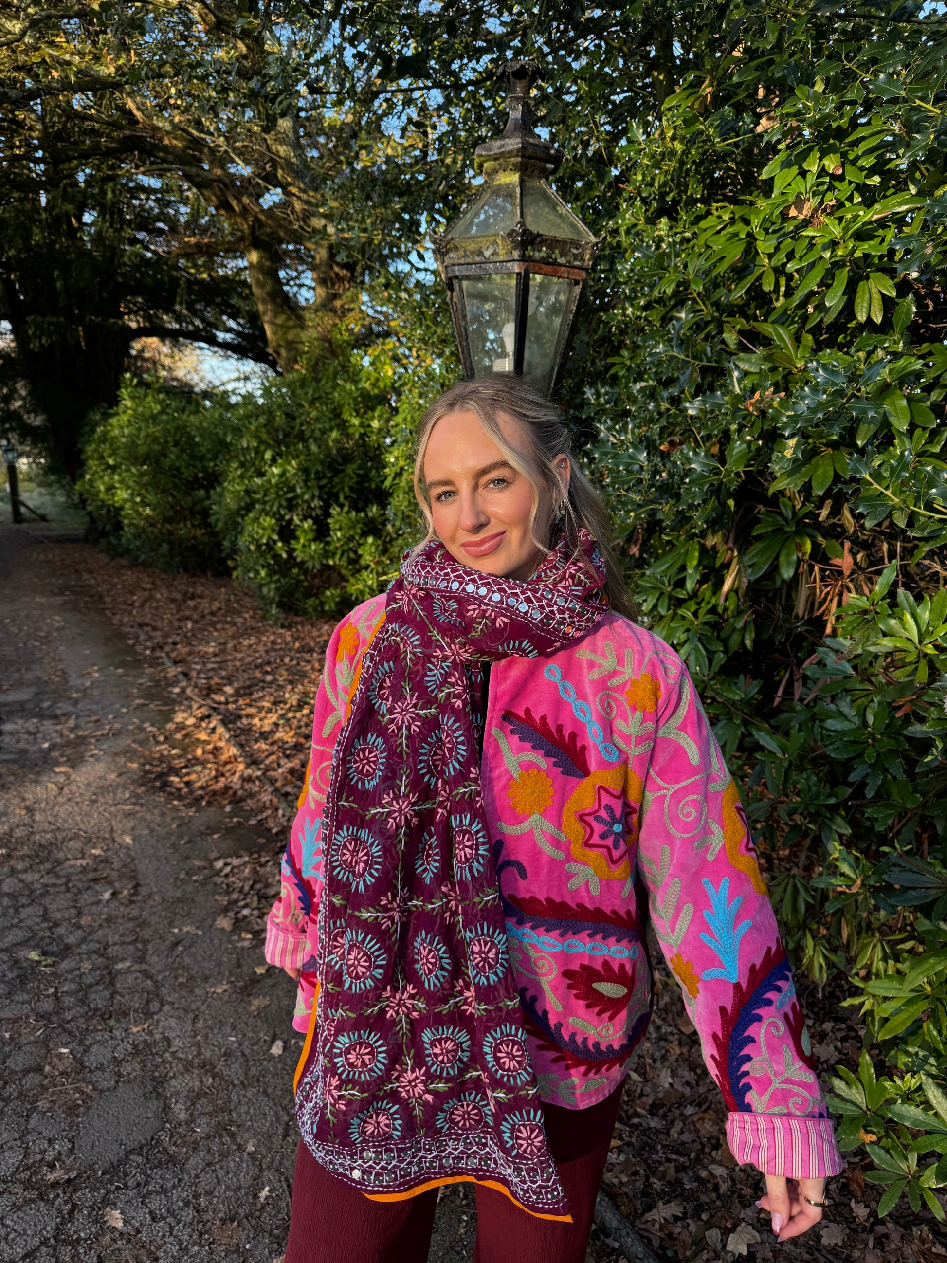 Please note: this is a handmade item, and natural variations in stitch, trace, and print are part of its story and is a testament to the process and artistry behind every scarf
