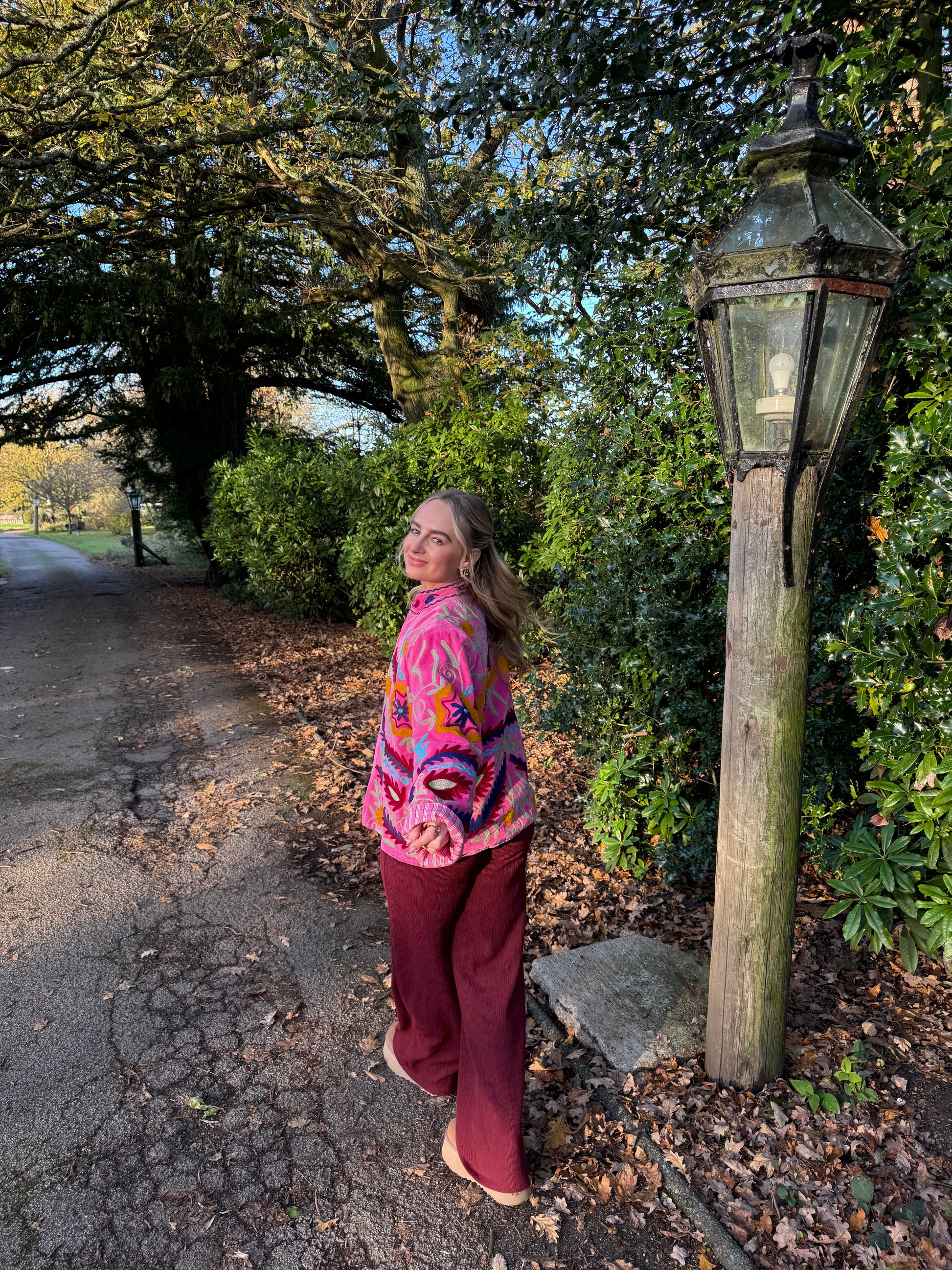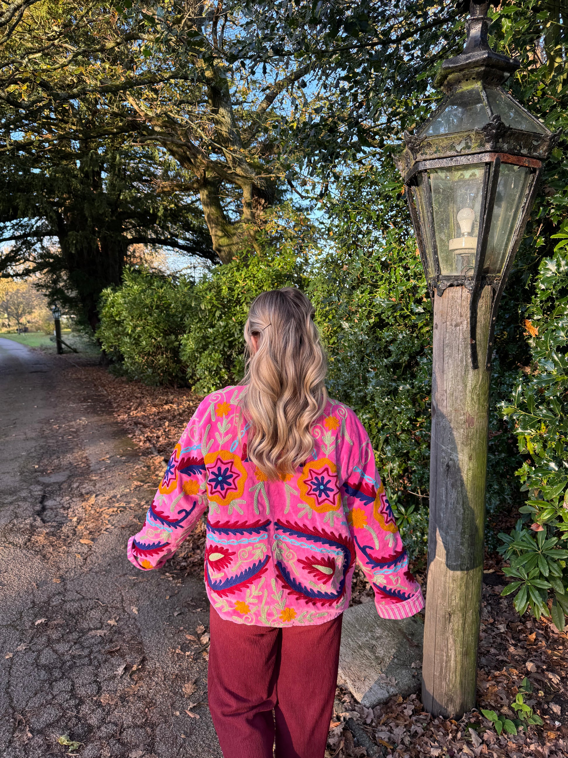 Turn heads in our stunning velvet Jacket. This unique piece is also fully lined.