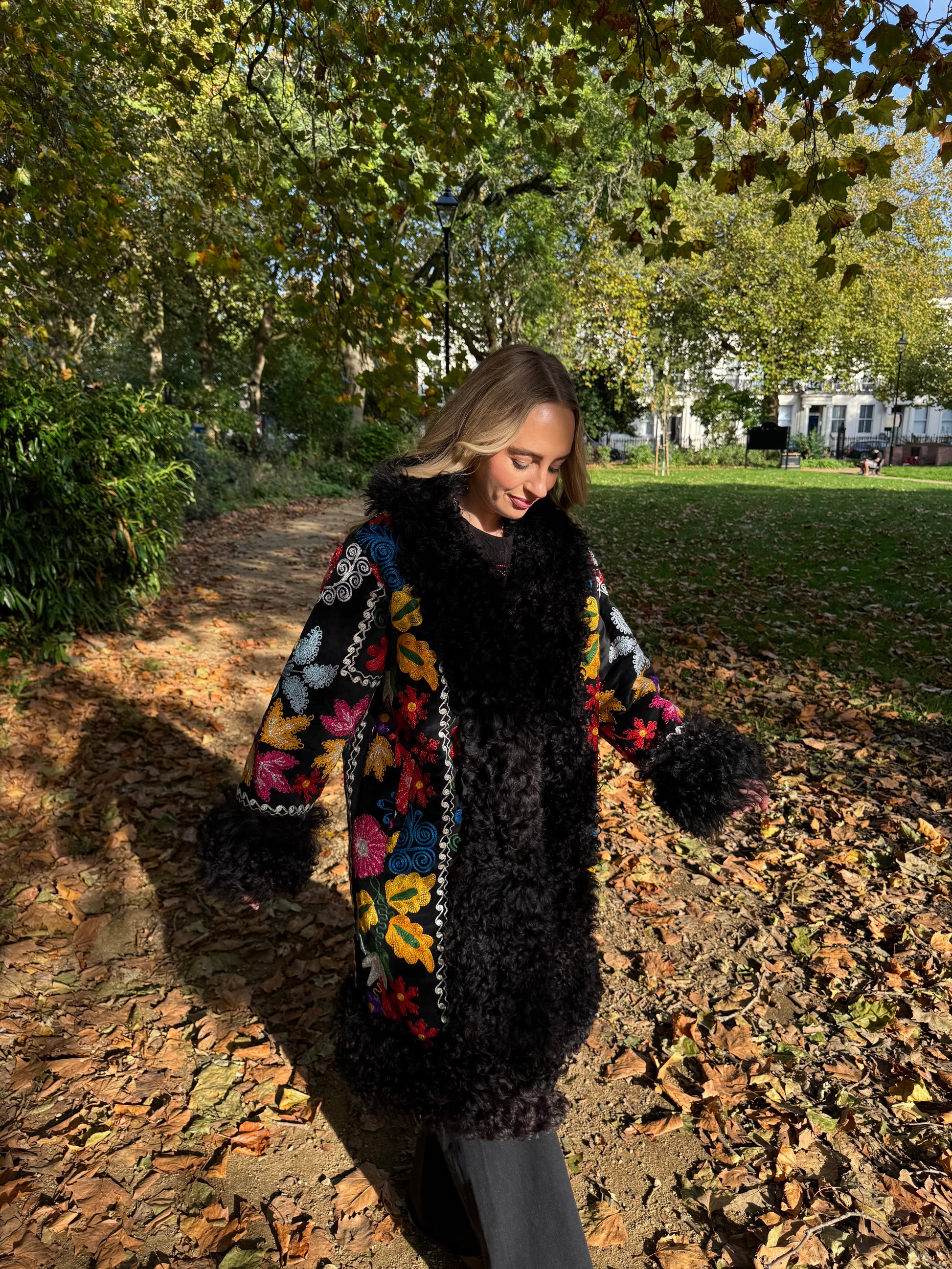 Each piece is crafted from rare vintage Suzani embroidery and upcycled sheepskin—materials that are as unique as they are sustainable. This isn’t just a coat; it’s a timeless piece of wearable art that you’ll treasure in your wardrobe forever. The quality, artistry, and story behind every stitch make it truly worth the investment.