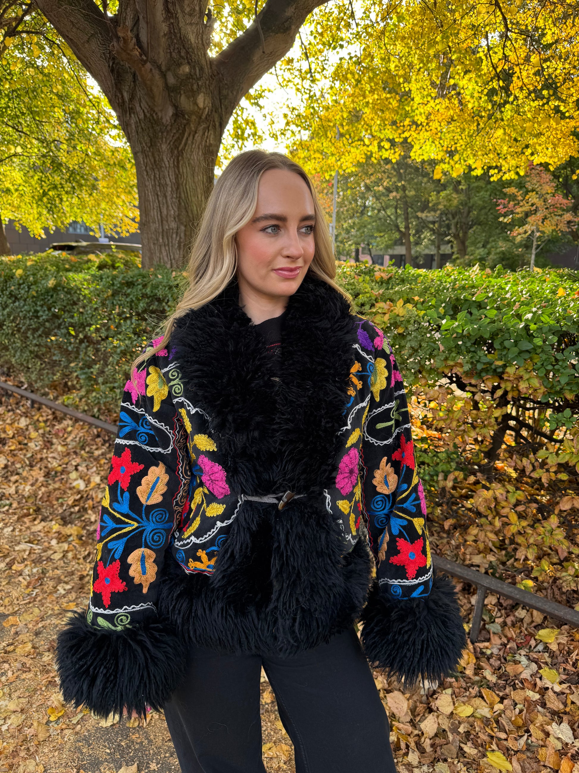 Each piece is crafted from rare vintage Suzani embroidery and upcycled sheepskin—materials that are as unique as they are sustainable. This isn’t just a coat; it’s a timeless piece of wearable art that you’ll treasure in your wardrobe forever. The quality, artistry, and story behind every stitch make it truly worth the investment.