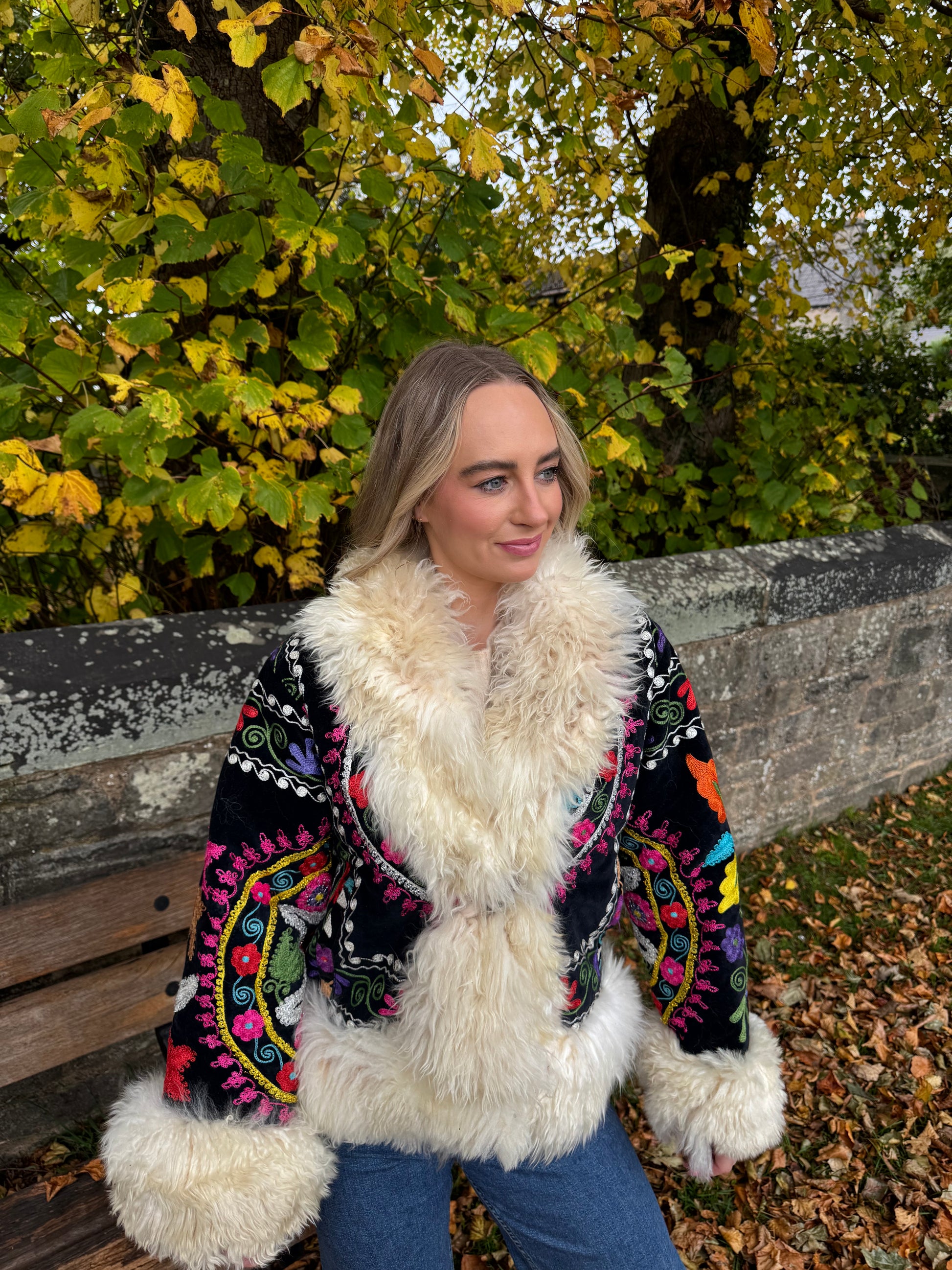 Each piece is crafted from rare vintage Suzani embroidery and upcycled sheepskin—materials that are as unique as they are sustainable. This isn’t just a coat; it’s a timeless piece of wearable art that you’ll treasure in your wardrobe forever. The quality, artistry, and story behind every stitch make it truly worth the investment.